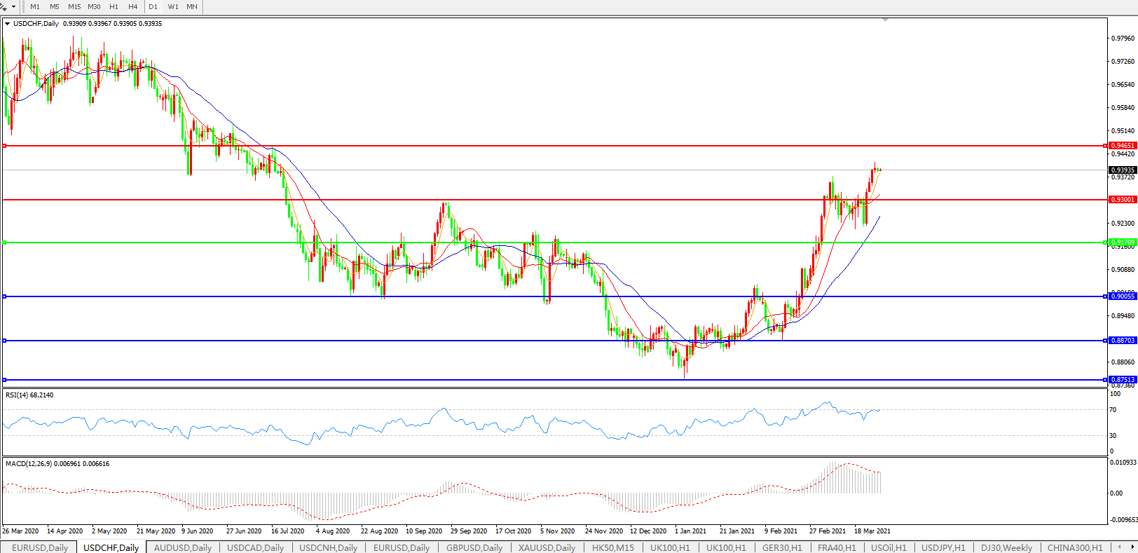 美元兑瑞郎USDCHF    日线图: