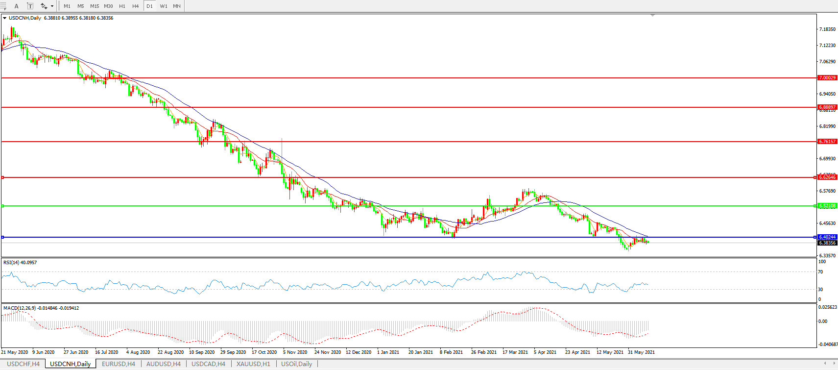 美元兑人民币USDCNH 日线图: