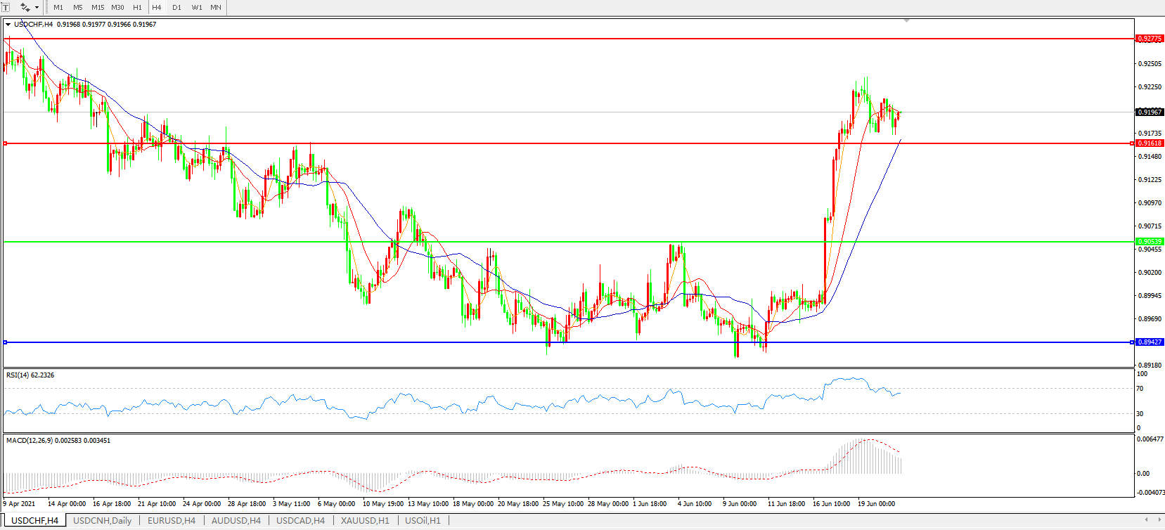 美元兑瑞郎USDCHF 4小时图: