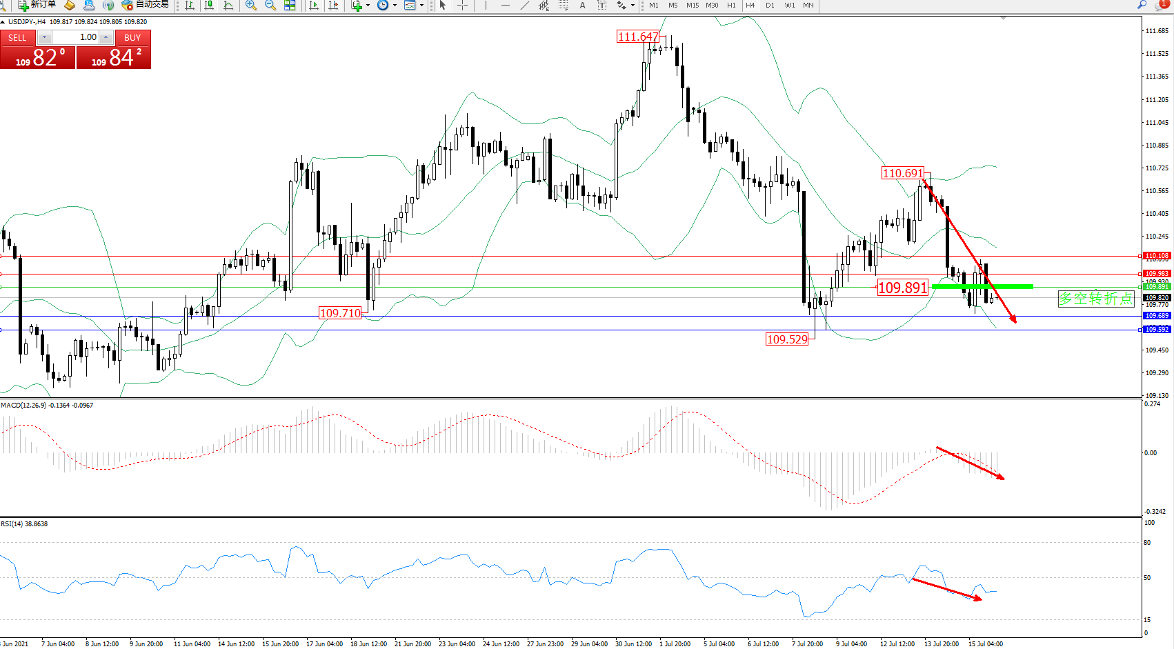 交易策略:109.891下方看跌,目标109.689、109.592