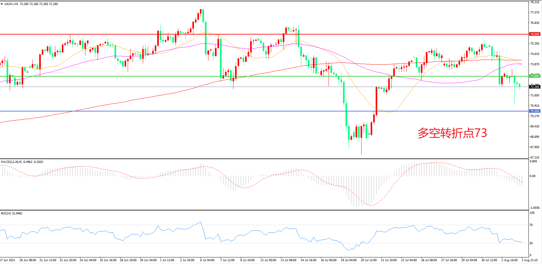 多空转折点:73.00