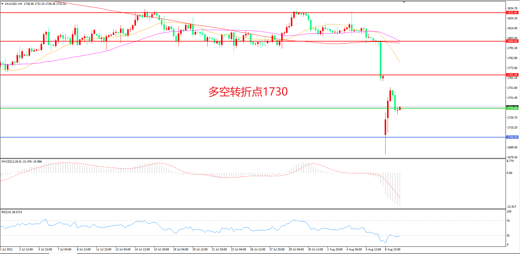 多空转折点:1730.00