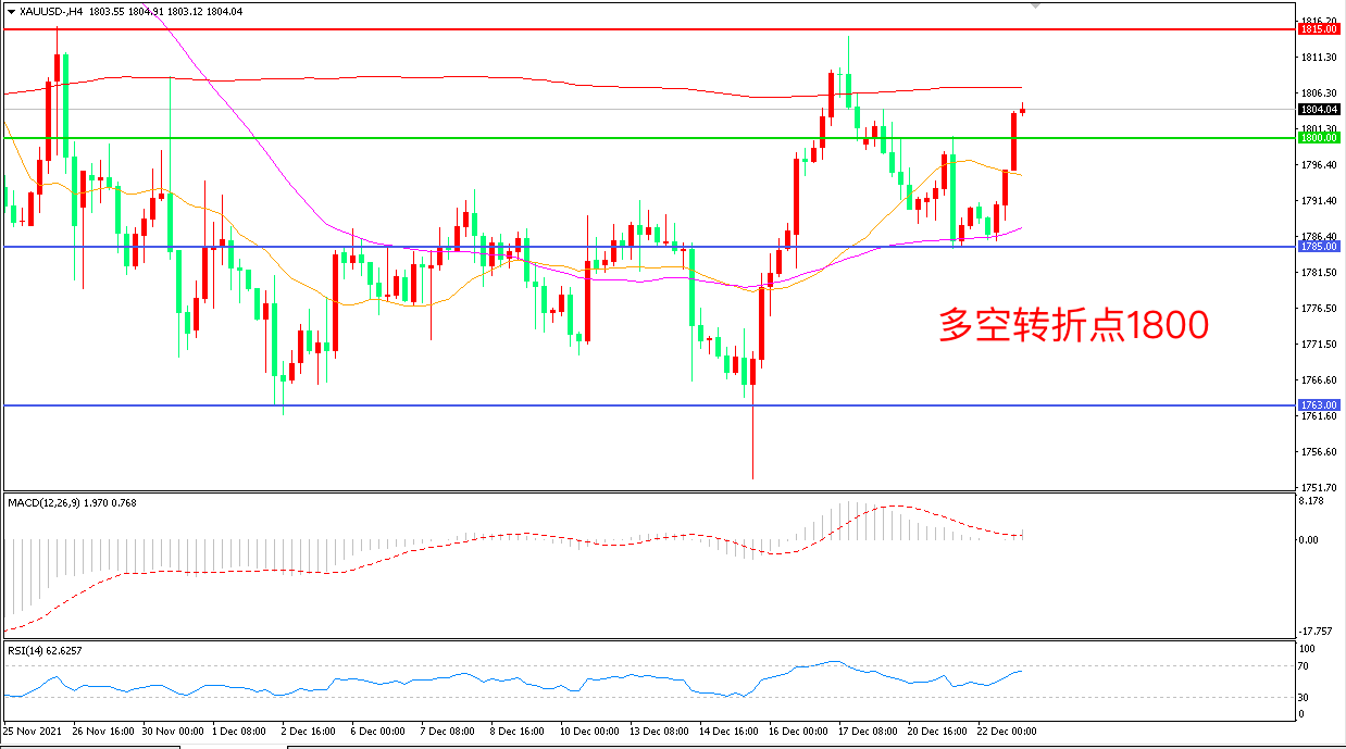交易策略:在1800.00之上看涨,目标1815.00       1830.00