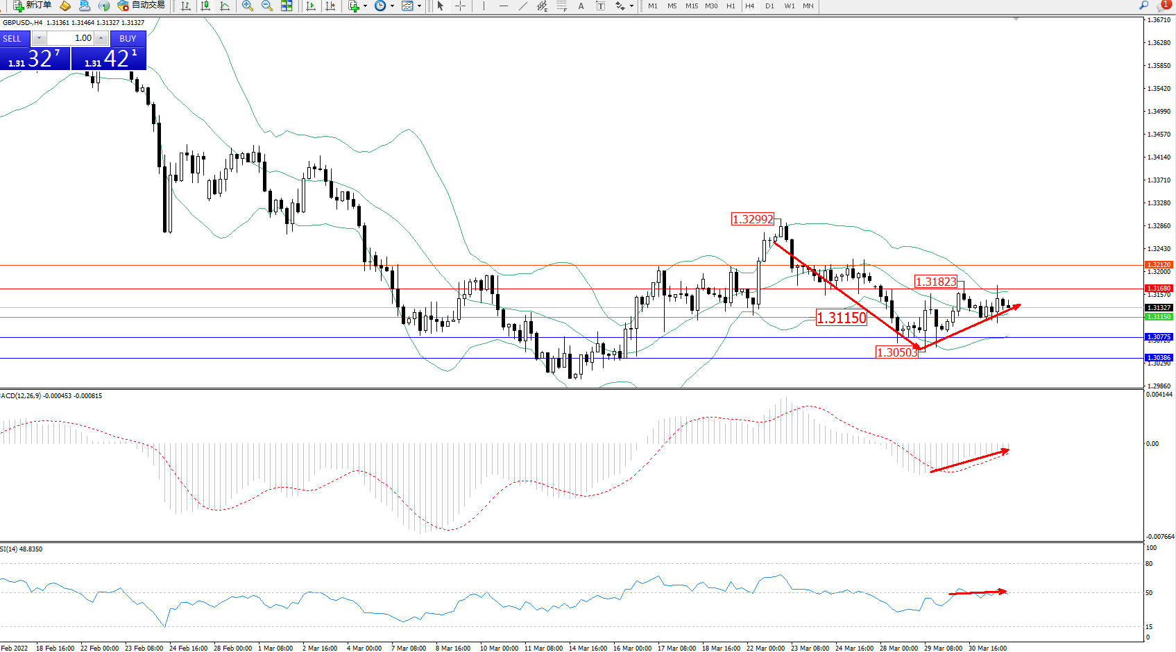 交易策略:1.31150上方看涨,目标1.31680、1.32120