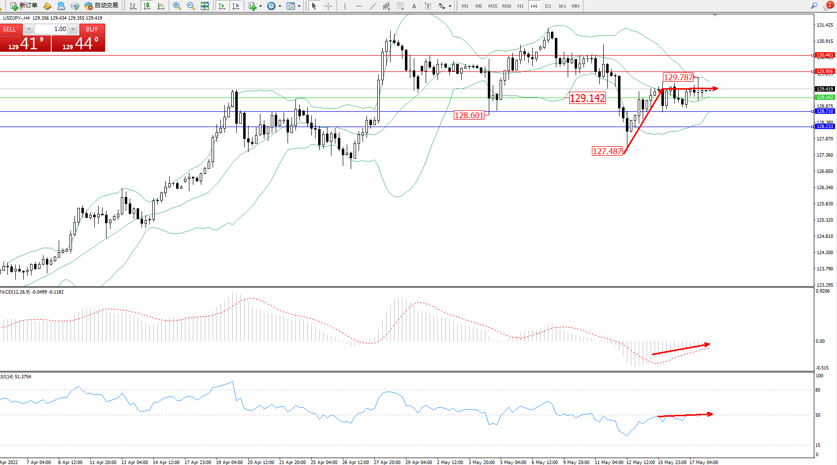 交易策略:129.142上方看涨,目标129.956、130.463