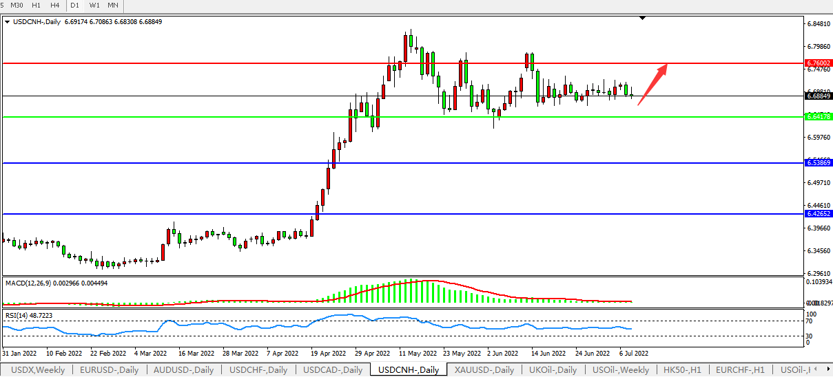 交易策略:在6.6416之上,看涨,目标价位为6.7600、6.8870