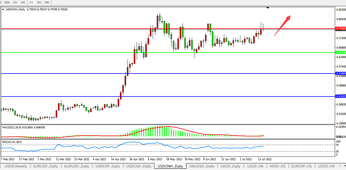 交易策略:在6.6416之上,看涨,目标价位为6.7600、6.8870