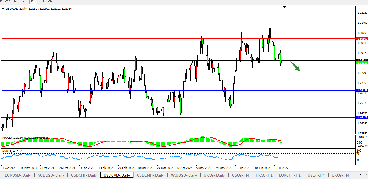 USDCAD:1.2850支撑反复测试 USDCAD  CADJPY