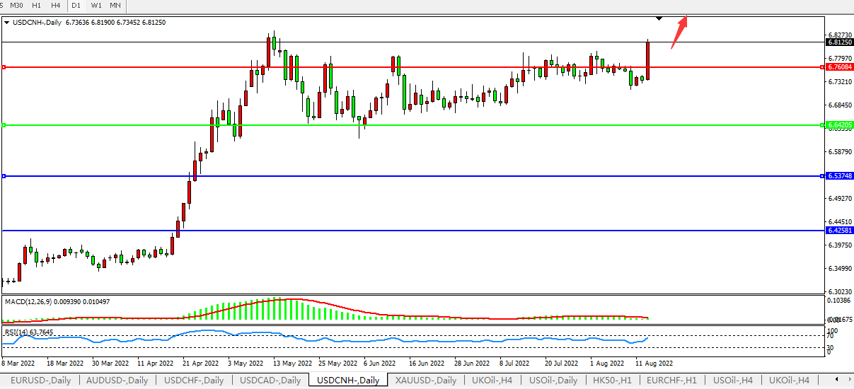 USDCNH :如期拉升上行 USDCNH   HKDCNH