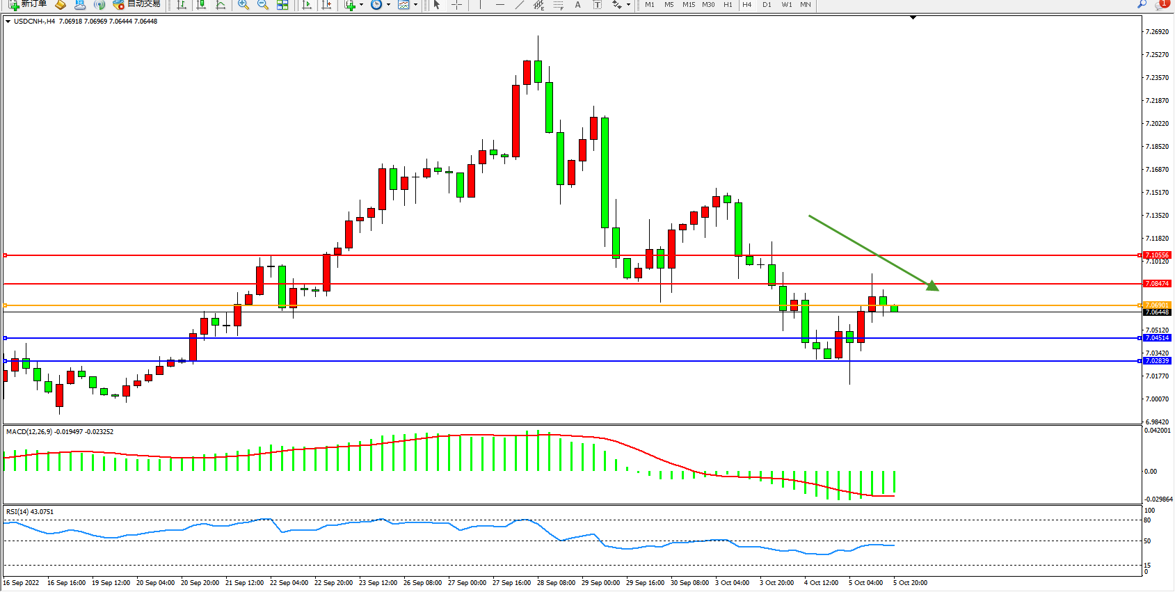 美元兑人民币维持7.06448附近震荡,世界贸易组织在日内瓦发布贸易预测更新报告。由于多重冲击对全球经济造成压力,世贸组织预计全球贸易将在2022年下半年失去动力,并在2023年保持低迷。