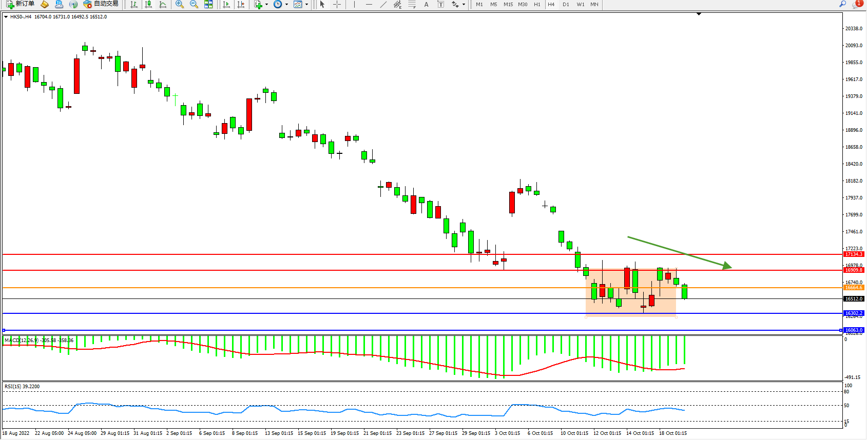 恒指HK50 4小时图