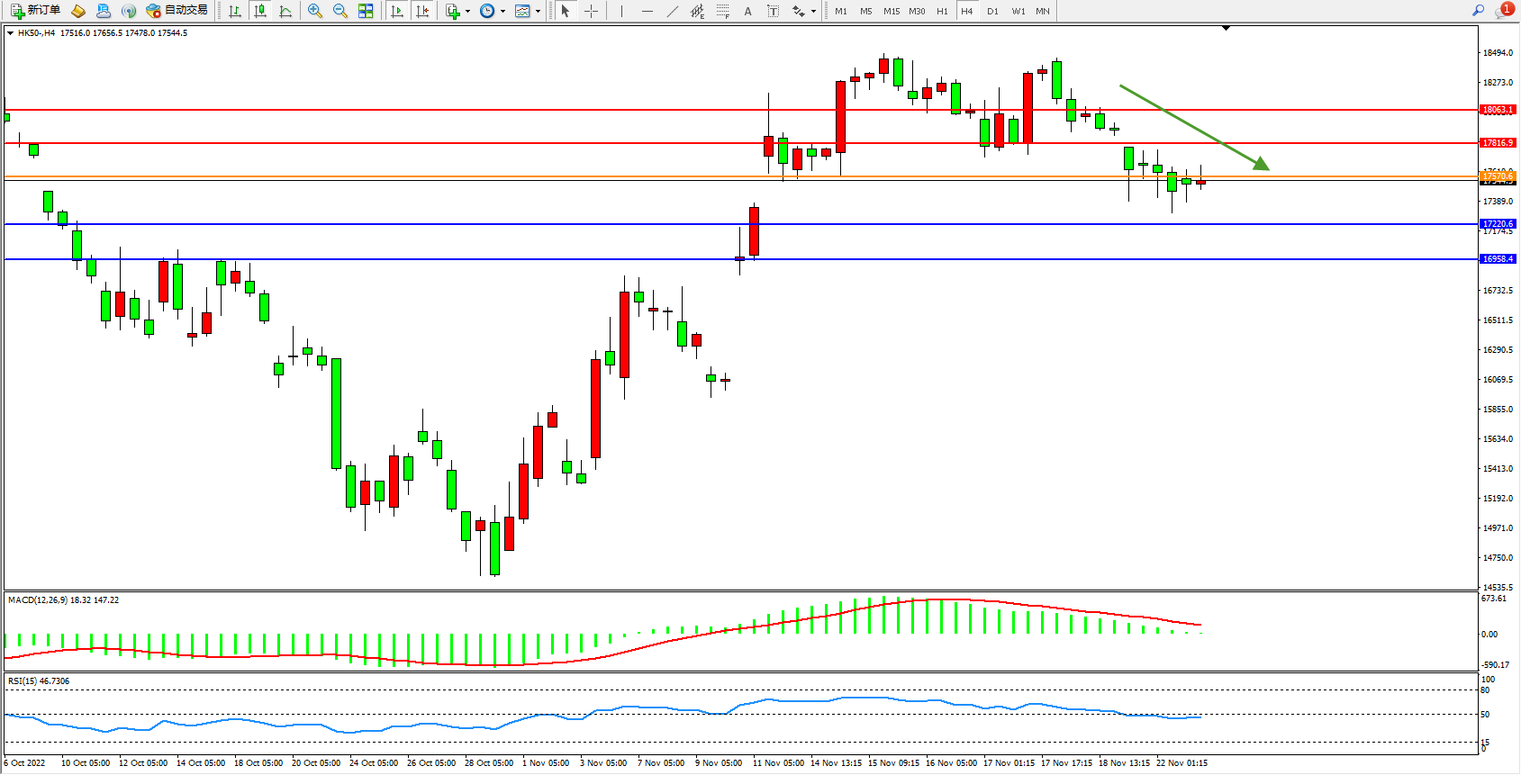 恒指HK50 4小时图