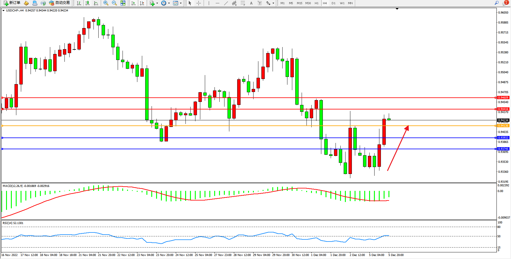 交易策略:0.94136上方看涨,目标0.94416、0.94609
