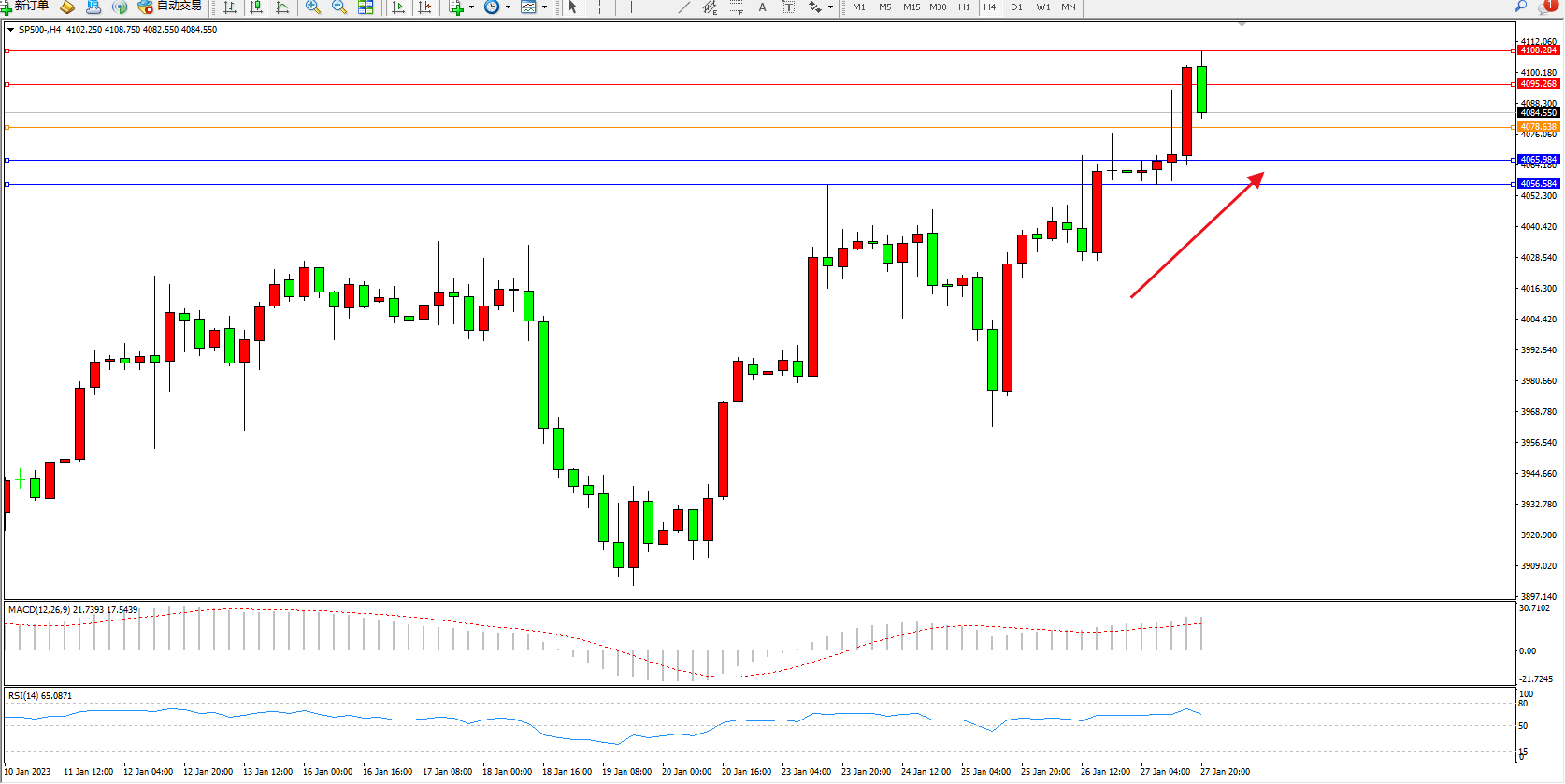 标普SP500——4小时K线图显示: