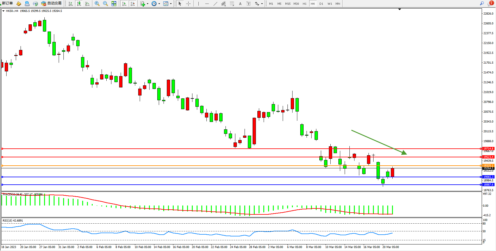 4小时图看:空头动力延续下行趋势持续震荡下移,短期跌势或将延续,市场整体处于偏弱势,低位虽有小幅反转震荡迹象,但空头趋势未变,MACD指标处于空头区域维持整理,RSI指标处于50均衡线下侧弱势徘徊;