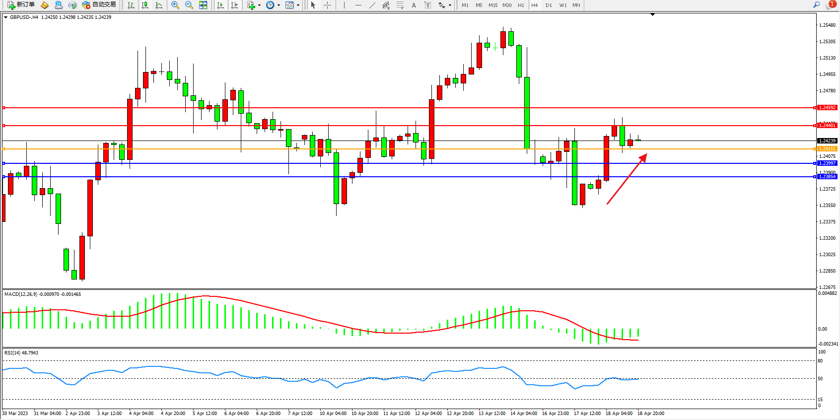 英镑美元GBPUSD ——4小时K线图显示: