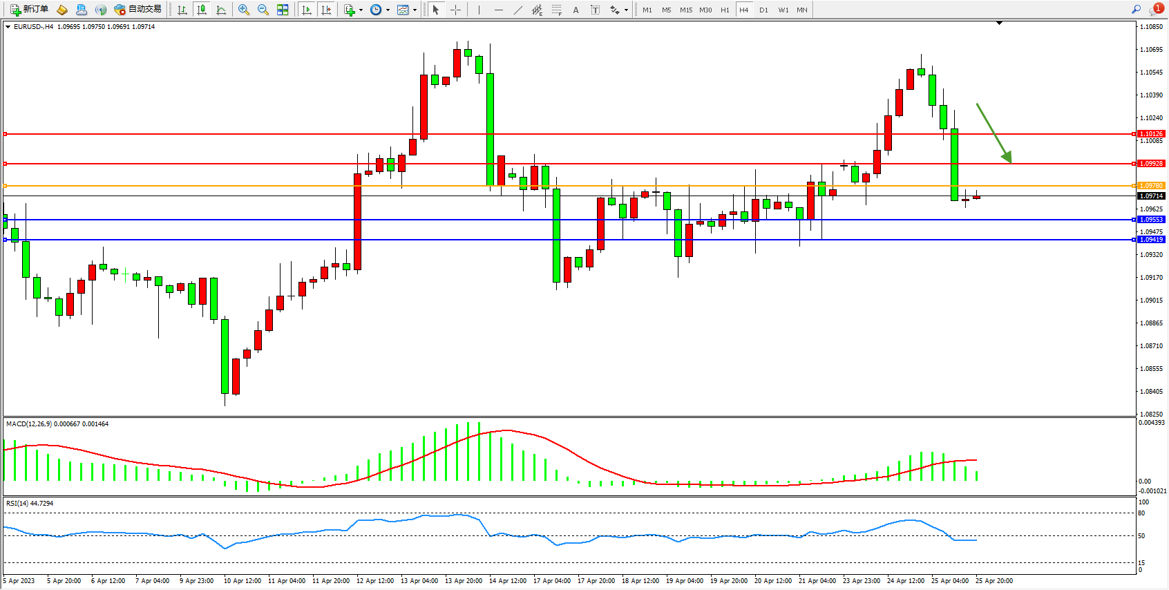 交易策略:1.09780下方看跌,目标1.09553  1.09419