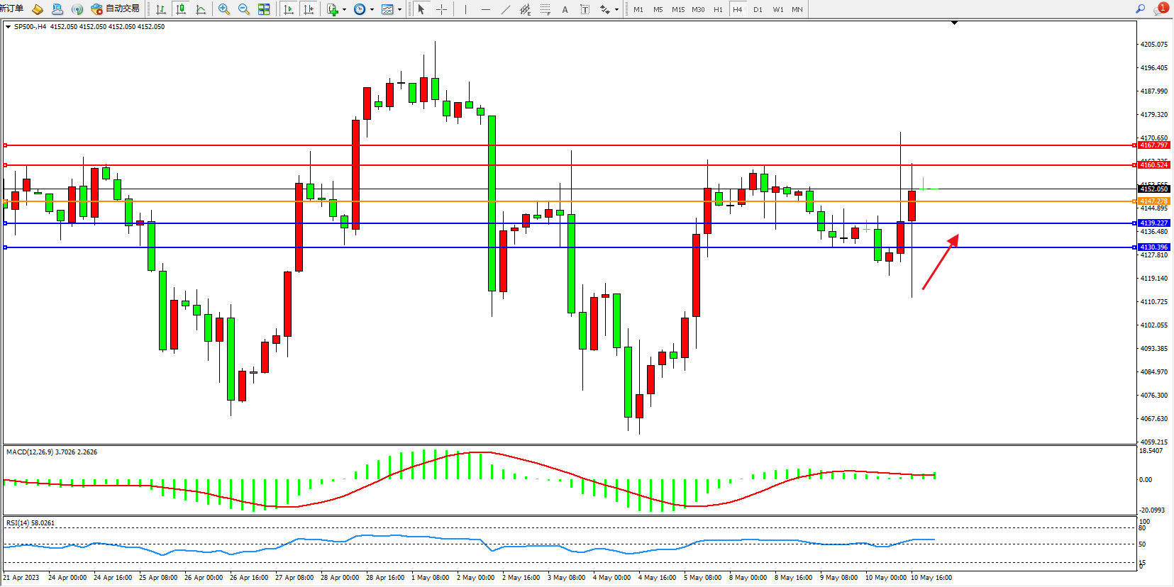 标普SP500——4小时K线图显示:
