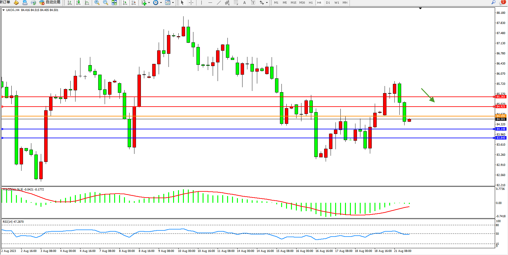 布油UKOil——4小时K线图显示: