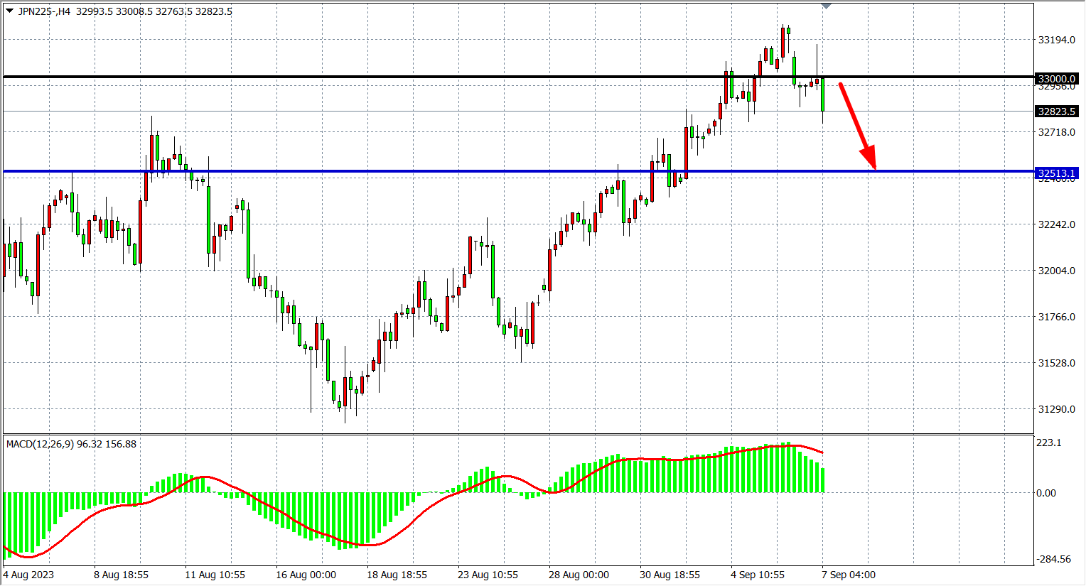 周四(9月7日)日经225指数收盘下跌242.50点,跌幅0.73%,报33010.00点