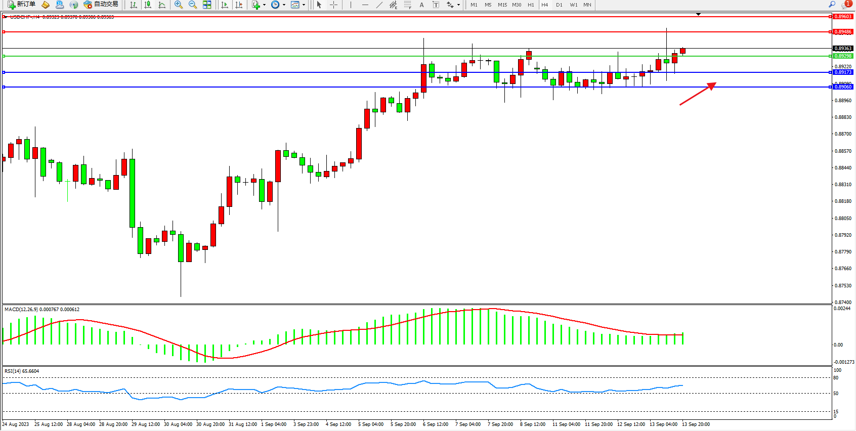 美元瑞郎USDCHF——4小时K线图显示: