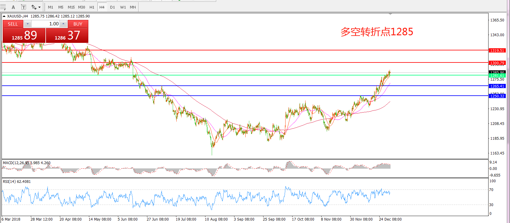 交易策略:在1285.00之上看涨,目标1300.00  1319.00