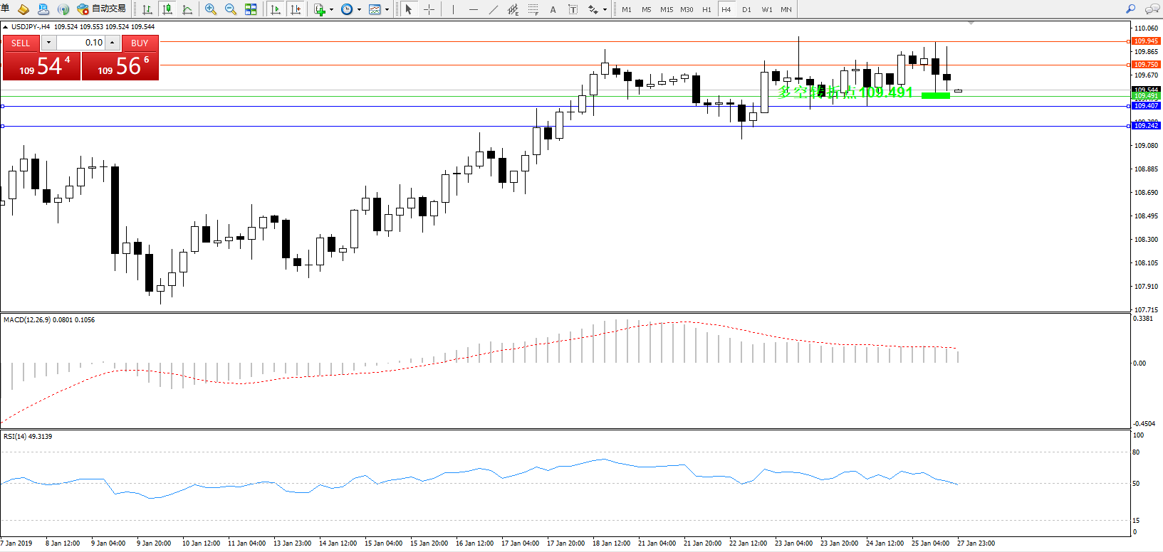 交易策略:109.491上方看涨,目标109.750109.945