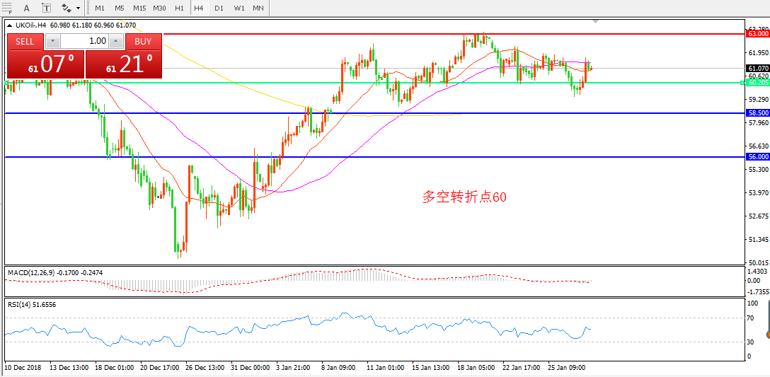 交易策略:在60.00之下看跌,目标58.50 56.00