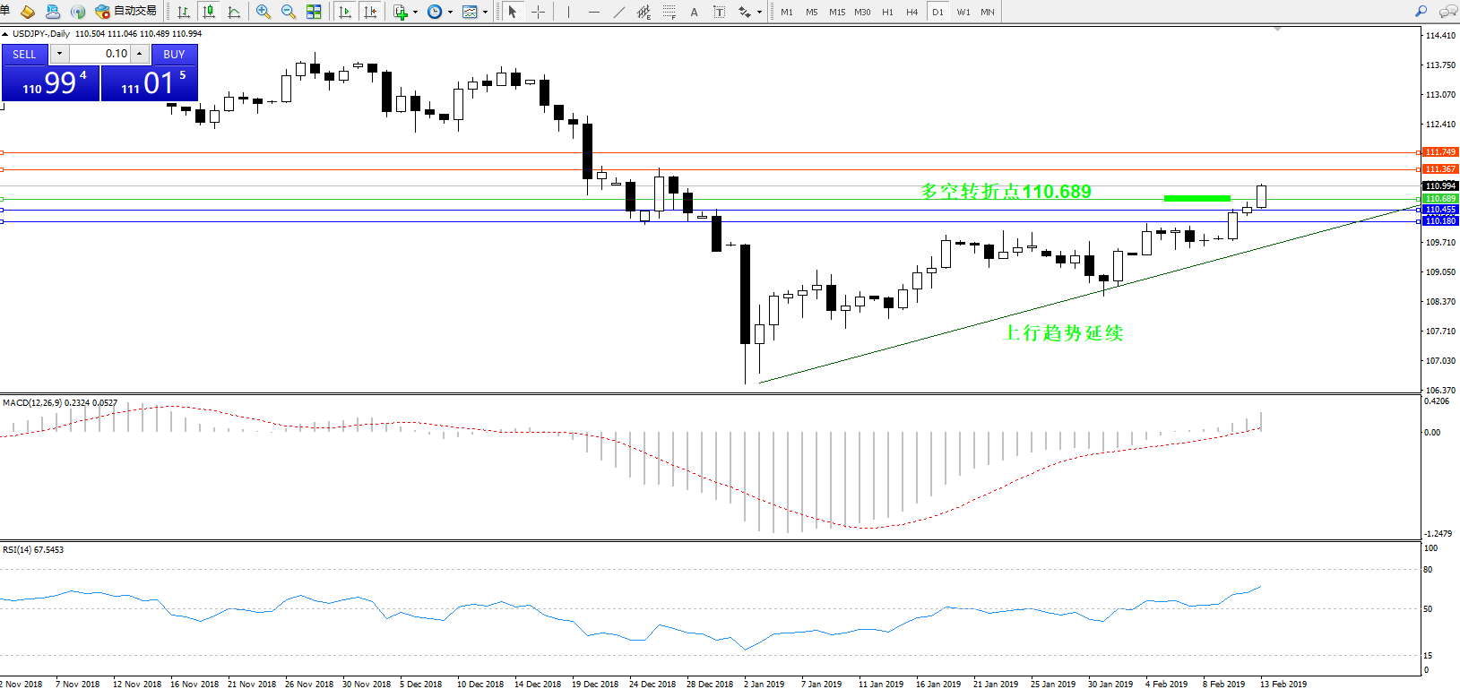 交易策略:110.689上方看涨,目标111.367、111.749