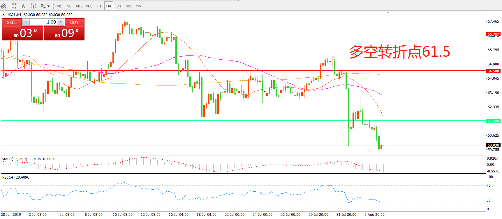交易策略:在61.50之下看跌,目标57.50   53.50