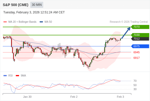 在 6975 之上,看涨,目标价位为 7030 ,然后为 7070 。