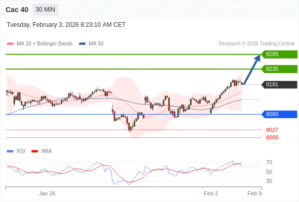 Cac 40 当日内: 期待8235。