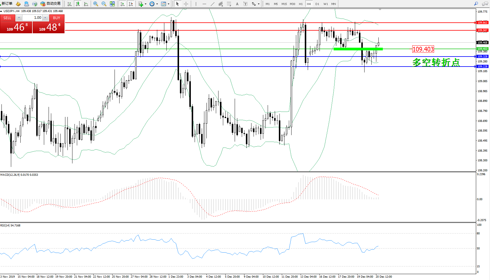 交易策略:109.403上方看涨,目标109.587109.663