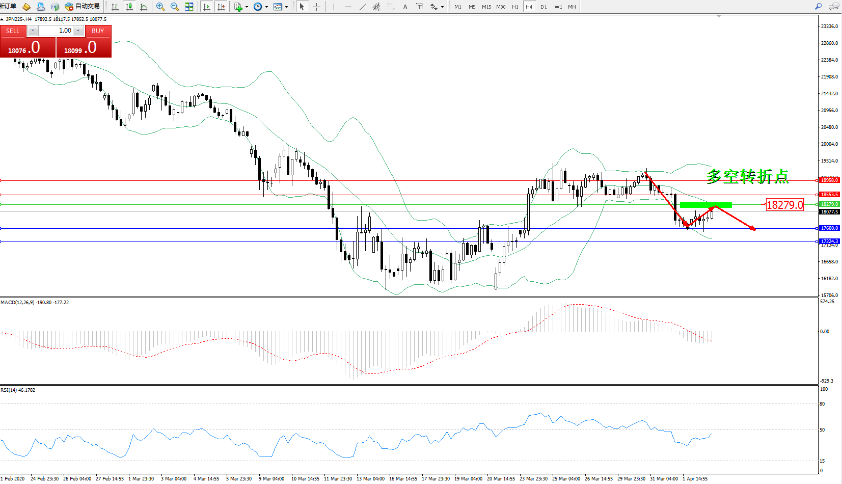 日经指数JPN225——4小时K线图显示: