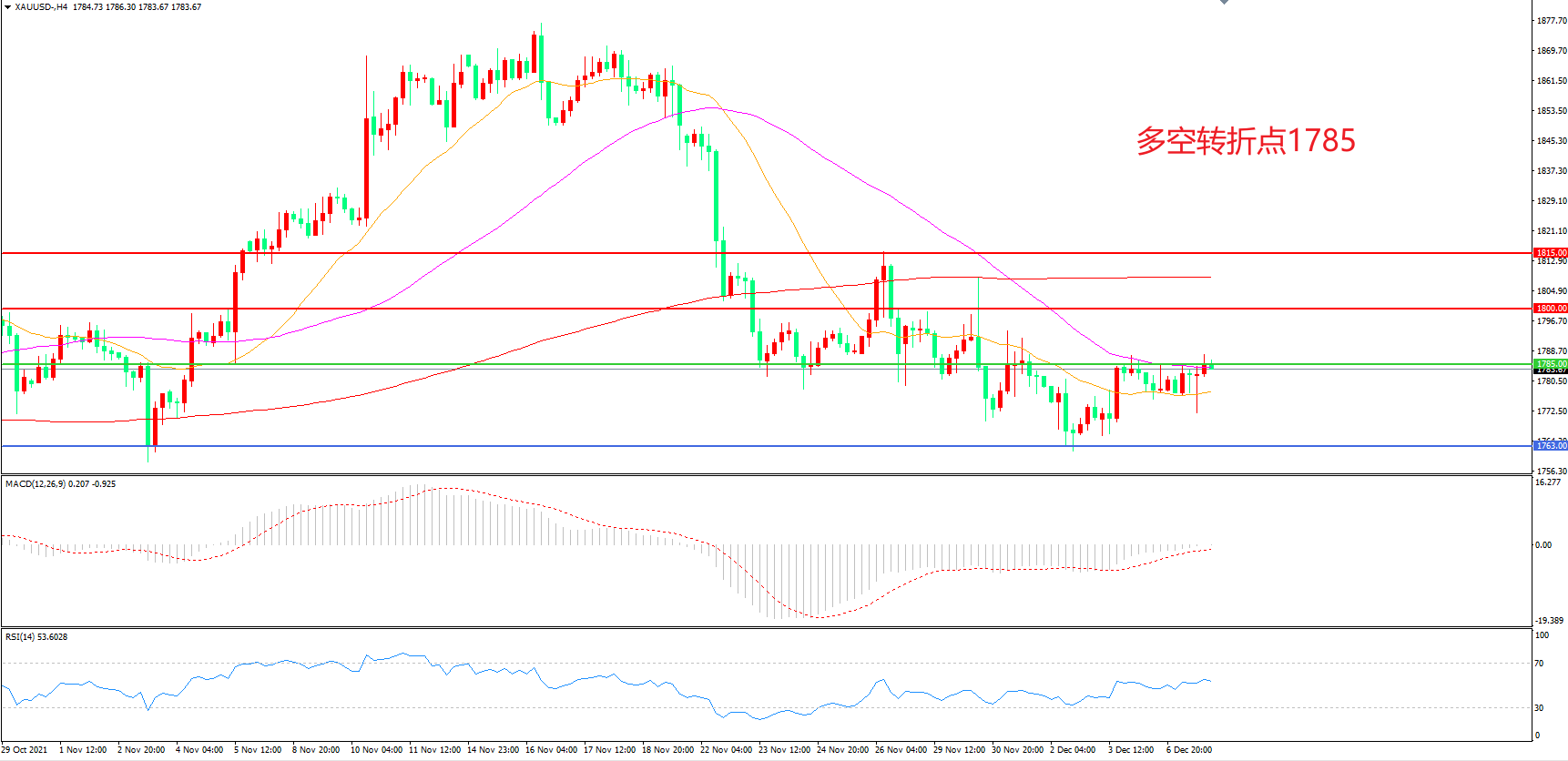 多空转折点:1785.00
