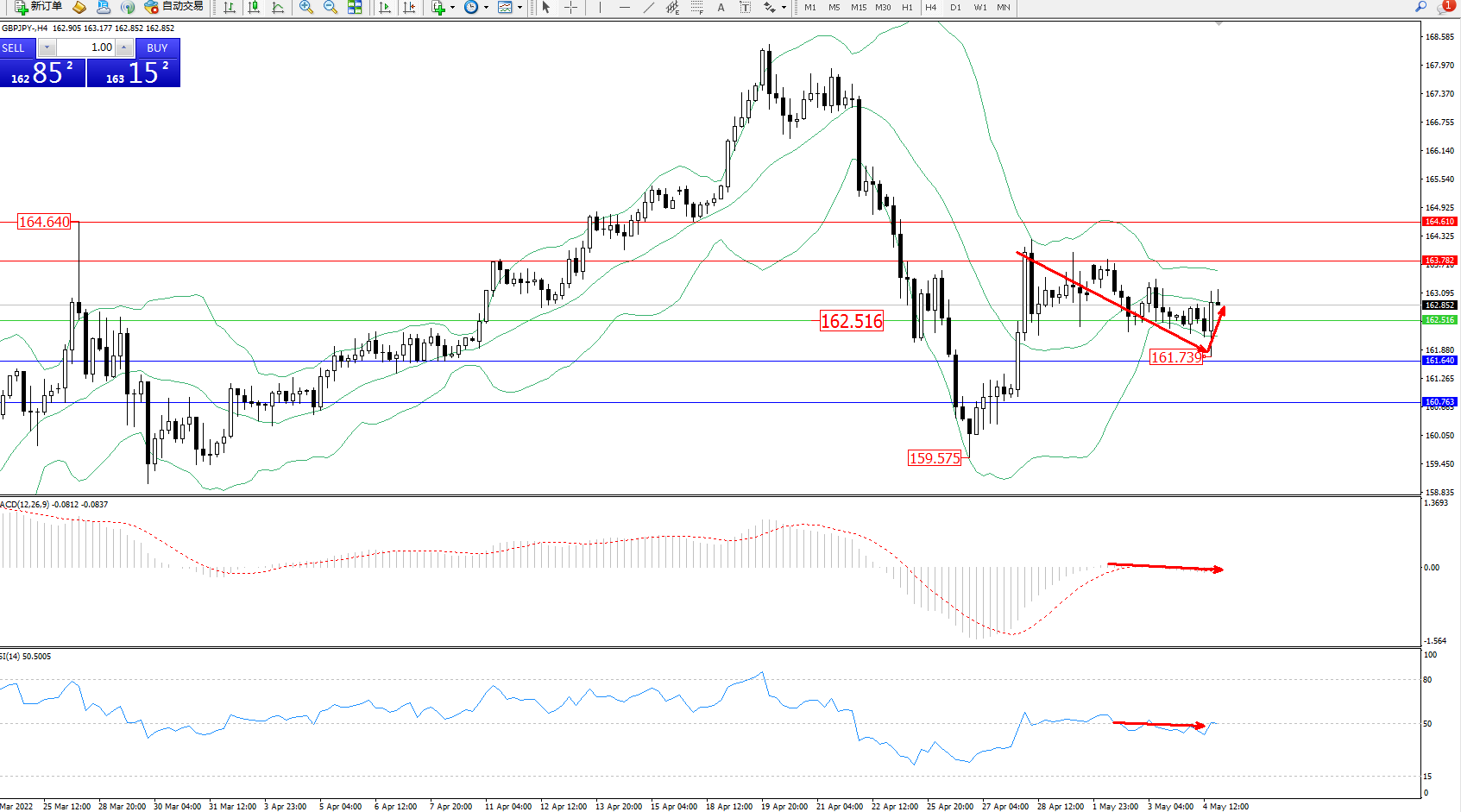 交易策略:162.516上方看涨,目标163.782、164.610