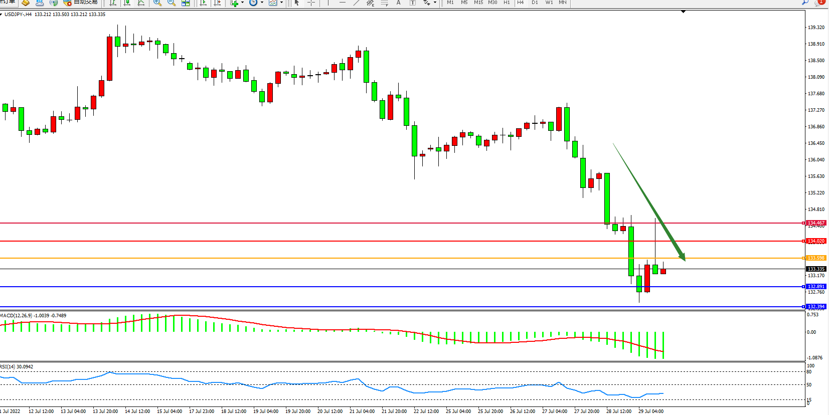 美元兑日圆维持133.335附近震荡,在美联储会议结束后,日连续第三天走高。加息预期削减促使对冲基金对日空头头寸进行回补。美日目前已较7月中旬的高点下跌逾4%。