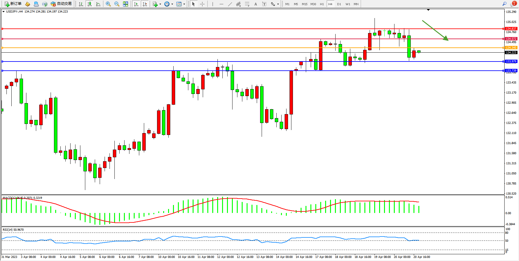 阻力位:134.572 134.837
