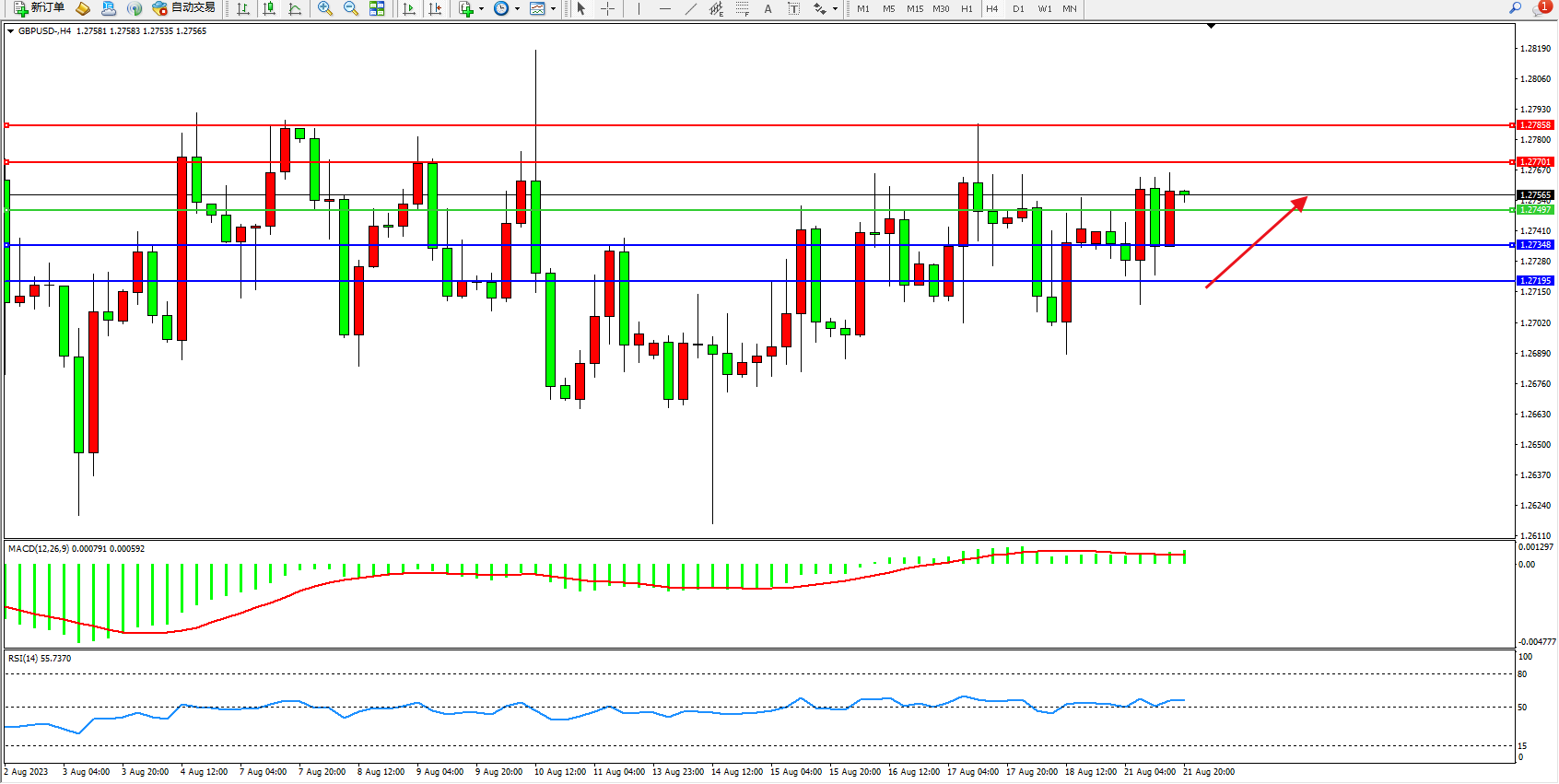 阻力位:1.27701 1.27858